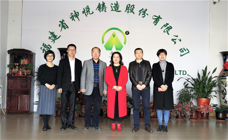 图为编委会工作组在神悦铸造合影