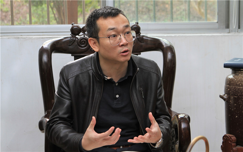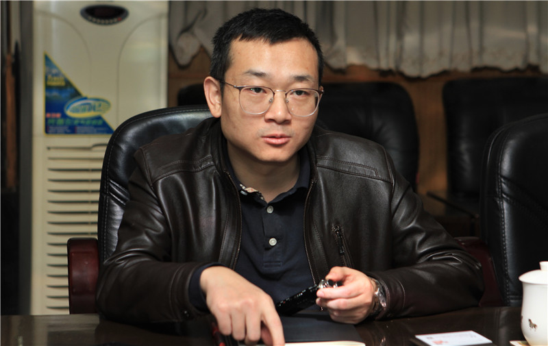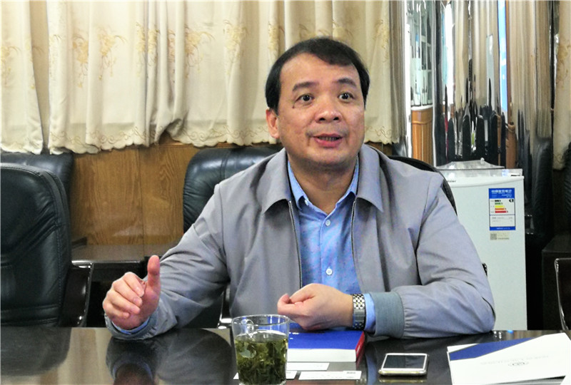图为龙溪股份总经理陈晋辉与工作组交流