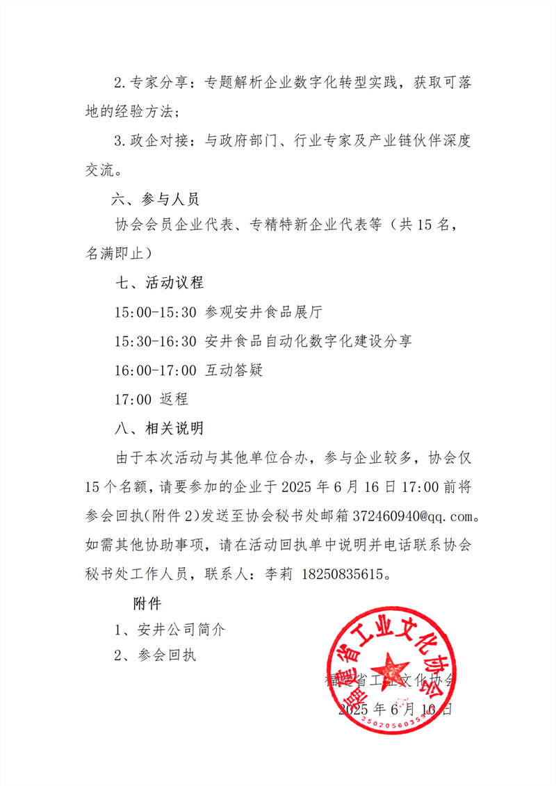 关于“走访安井食品暨数字化转型专题分享活动”的通知