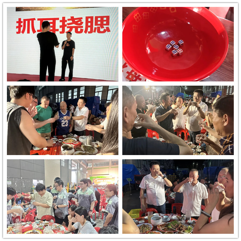 在阵阵骰子声中,丰盛的晚宴正式开始。各色佳肴陆续上桌,香气四溢。同事们围桌而坐,时而举杯畅饮,时而为掷出的好彩头欢呼雀跃。